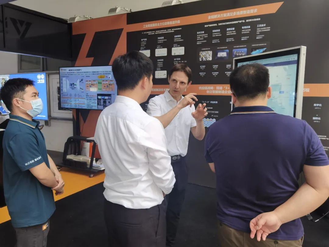 一汽·大眾汽車有限公司佛山分公司黨委書記、總經(jīng)理王偉在展臺(tái)了解明珞的產(chǎn)品及服務(wù)后,對(duì)明珞通過工業(yè)大數(shù)據(jù)平臺(tái)提升效率、降低能耗表示認(rèn)可,并希望與明珞展開進(jìn)一步交流。